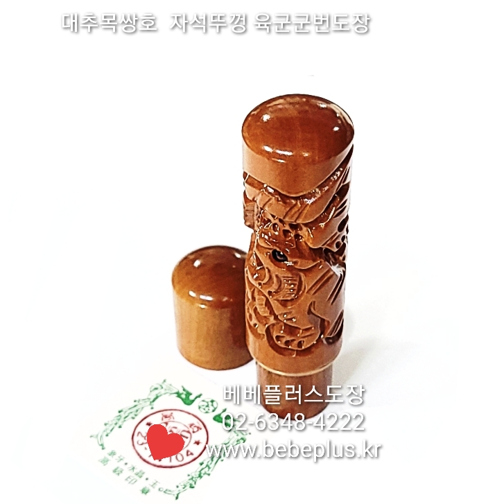 대추목쌍호 호랑이 자석뚜껑 6푼18mm 육군군번도장
